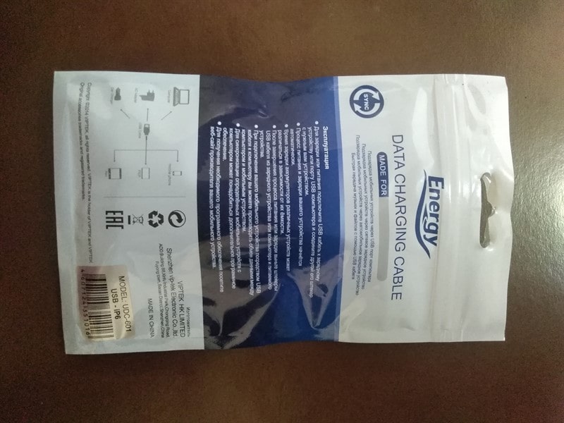 Дата-кабель зарядки lightning Energy udc-601