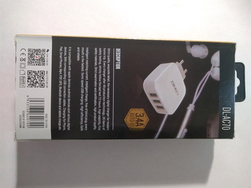 Максимальный ток зарядки – 3.4 A. Выходы для android и ios.
