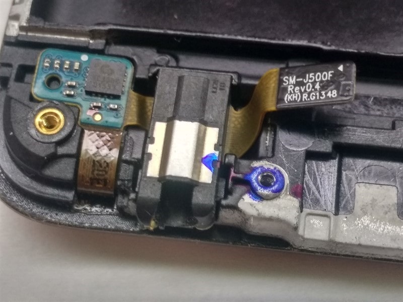 Разъем гарнитуы расположен на отдельном шлейфе вместе с кнопкой home.